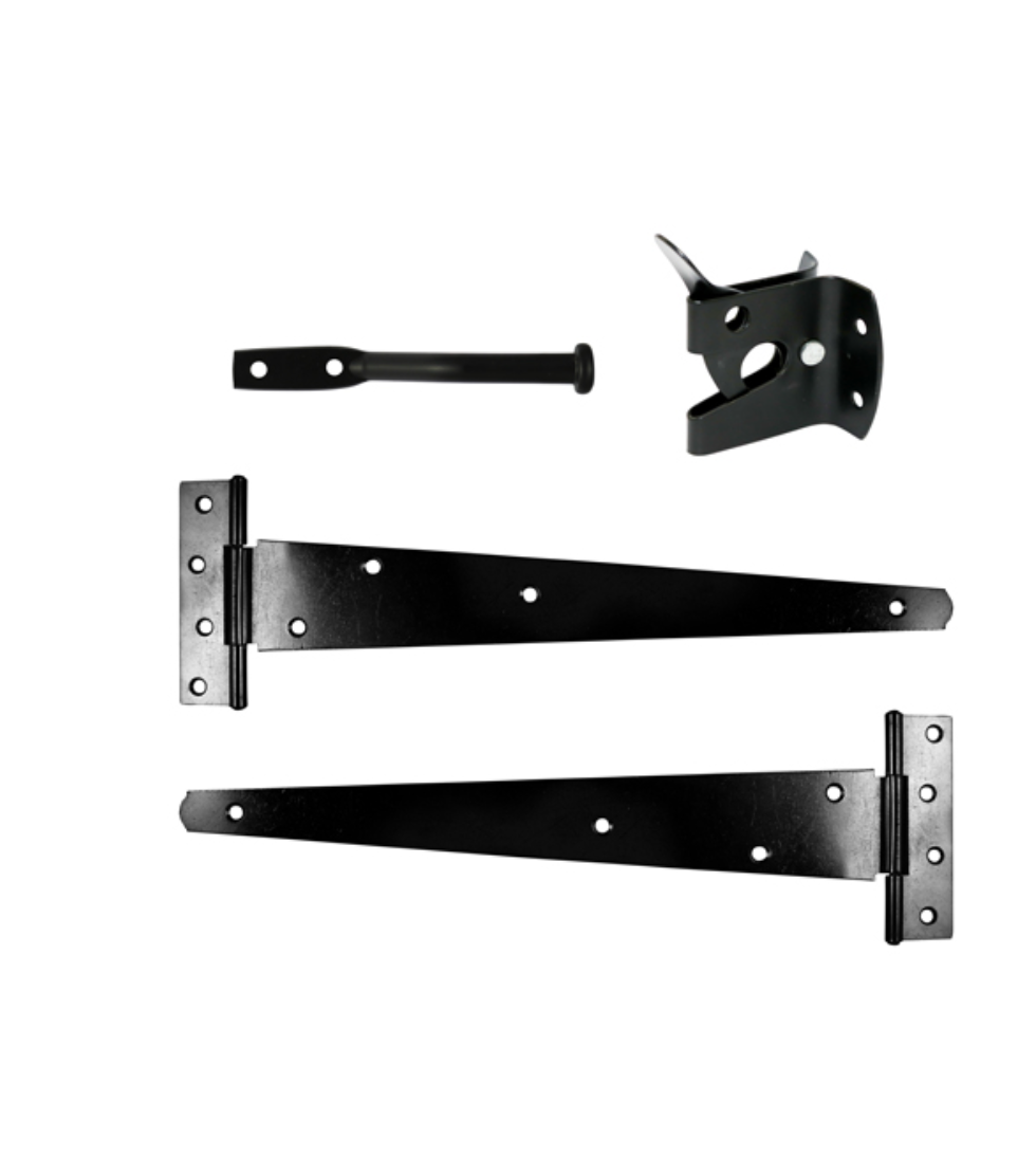 A complete gate kit for medium weight gates in domestic applications. Automatic gate latch is pad-lockable for additional security.
